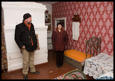 На фото: Мужик вешает портрет Горького в своем доме. (Специально для журнала «Огонек») И опять я с директором музея Ольгой (очень милая женщина. Была немного напугана неожиданной высадкой «морского десанта» с замерзшей Волги. Фото Андрея Беговатова — капитана парусной яхты «Maria«, у которого я состою на службе вахт-матросом на Гаити, в свободное от фотографии время.